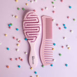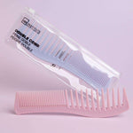 Pieptene pentru descurcat parul cu maner rigid. Prevazut cu dinti de 2 tipuri. Culoare pastel.