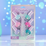 Intră în lumea magică a sirenelor cu Martinelia – Let’s Be Mermaids Nail Set, un set adorabil de manichiură pentru micile visătoare care iubesc culoarea și strălucirea!Setul conține 6 lacuri de unghii colorate în nuanțe pastelate de roz, mov, albastru și turcoaz, ușor de aplicat și cu formulă peel-off, special concepută pentru copii — se îndepărtează simplu, fără dizolvant.