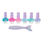 În plus, setul include o pilă pentru unghii în formă de coadă de sirenă, decorată cu solzi holografici, perfectă pentru completarea lookului marin și pentru momente pline de distracție și creativitate.Cu acest set, fiecare mică sirenă își poate crea propriul look strălucitor, sigur și colorat!