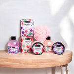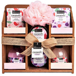 Set de produse pentru ingrijirea corpului cu ingrediente organice din extract de rodii si extract de smochine. Produsele sunt ambalate intr-un display de lemn decorativ si extrem de util in organizarea baii dumneavoastra. Continut set: 200ml gel dus, 200ml spuma baie, 130g sapun, 120ml lotiune corp, 120ml exfoliant, 100g sare baie, burete plasa.