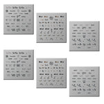 Modelele includ mesaje și simboluri stilizate precum „Love”, „Nice”, „Happy”, „Hello”, inimioare, steluțe și elemente grafice delicate, potrivite pentru manichiuri casual, romantice sau playful.