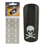 # Dezlipiti de pe hartie una dintre foliile sablon, atingeti de cateva ori cu buricul degetului fata adeziva a acesteia pentru a dezactiva usor adezivul. In acest fel sablonul nu va lasa urme pe stratul de oja de baza.