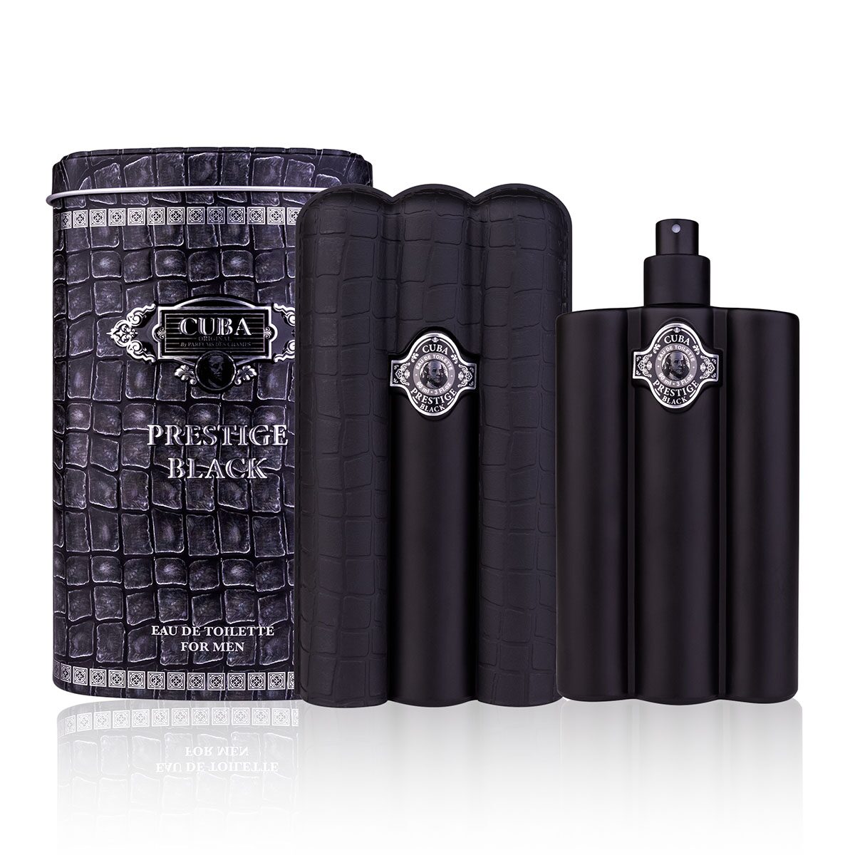 CUBA Prestige Black este un parfum masculin intens și sofisticat, încadrat în categoria olfactivă aromatic-lemnoasă, creat pentru bărbatul sigur pe sine, cu un stil puternic și elegant. Compoziția sa debutează cu note proaspete și energizante de lămâie și mentă, completate de accente verzi de chiparos. Inima parfumului dezvăluie o armonie floral-aromatică rafinată, în care lavanda, geraniumul, floarea de portocal, violeta și crinul adaugă profunzime și echilibru. Baza caldă, masculină, de lemn de cedru, mosc și ambră oferă persistență și caracter. Flaconul iconic, în stil trabuc Havana, completează experiența olfactivă cu un design distinct și elegant.