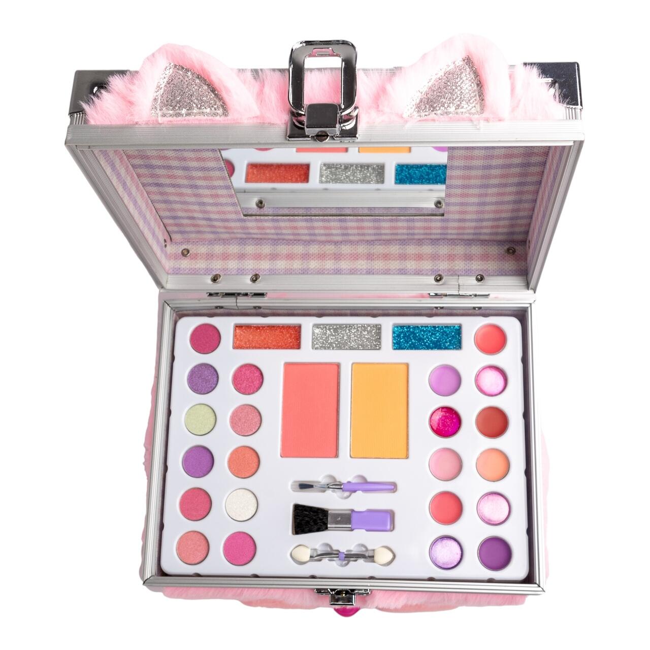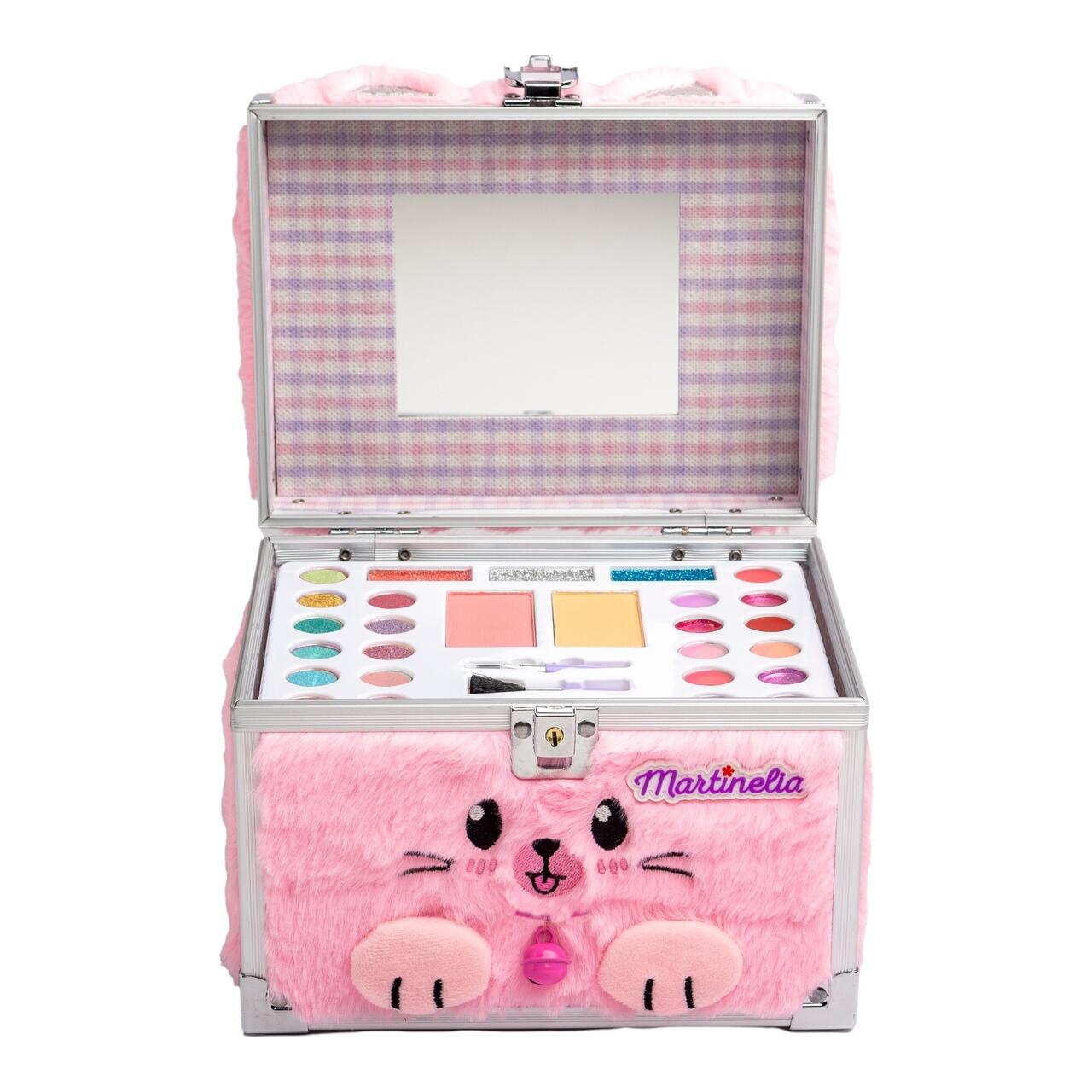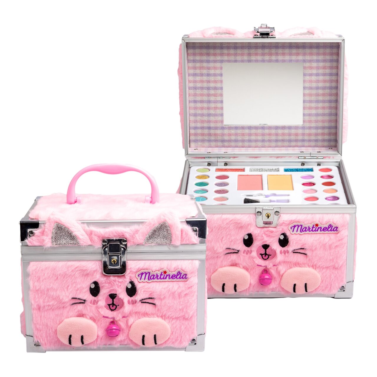 Transformă fiecare zi într-o aventură plină de culoare și sclipici cu Caseta de machiaj tip cufăr Lulu & Duki de la Martinelia! 🐱💖 Inspirată de simpaticele mascote ale colecției, această trusă adorabilă în formă de pisicuță îmbină farmecul și distracția într-un design moale, pufos și fermecător. Perfectă pentru micile artiste care iubesc machiajul și jocurile de imaginație, caseta conține tot ce au nevoie pentru a crea look-uri magice și colorate.
