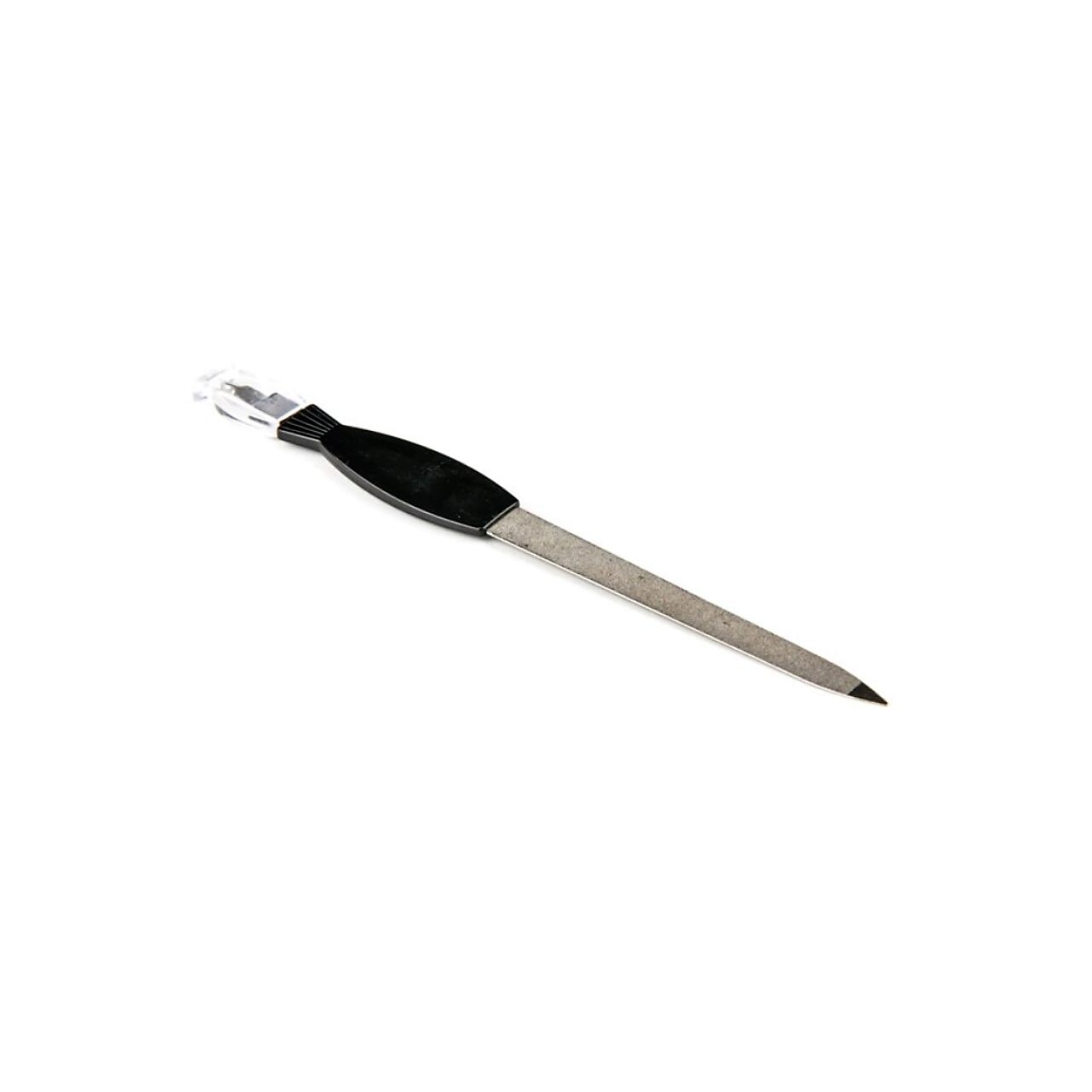 Practica si usor de manevrat. Pila pentru unghii diamantata, maner plastic. Manerul este prevazut cu accesoriu pentru manichiura si pedichiura: cutitas pentru cuticule. Lungime: 9cm. Avertismente: Uz extern. Nu lasati la indemana copiilor. Depozitati in mediu uscat, igienizati periodic
