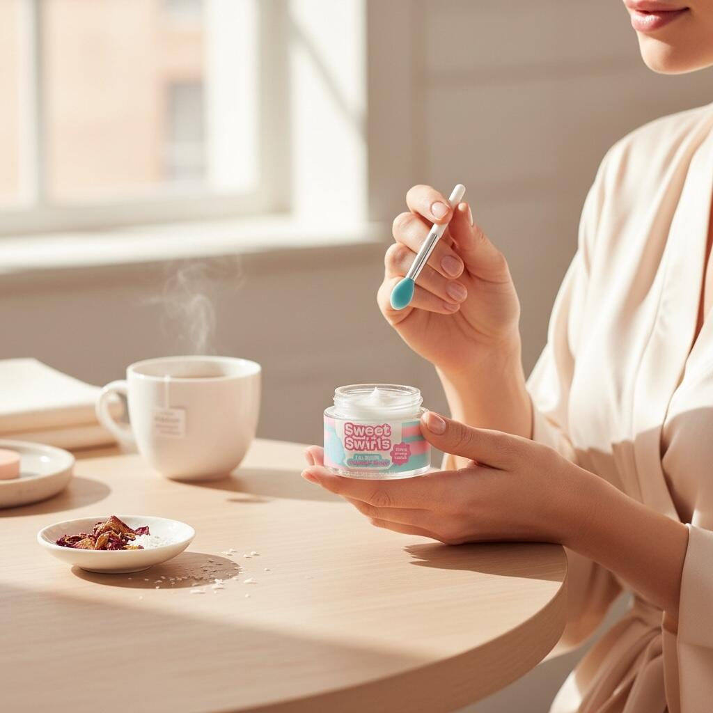 Transformă-ți rutina de îngrijire cu IDC Institute Sweet Swirls – Coconut Sugar, o mască de noapte pentru buze cu aromă cremoasă de cocos și note fine de zahăr. Textura sa densă, ultra-emolientă, oferă o barieră nutritivă ce repară, hidratează și calmează buzele sensibile pe timpul somnului.