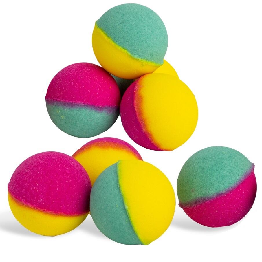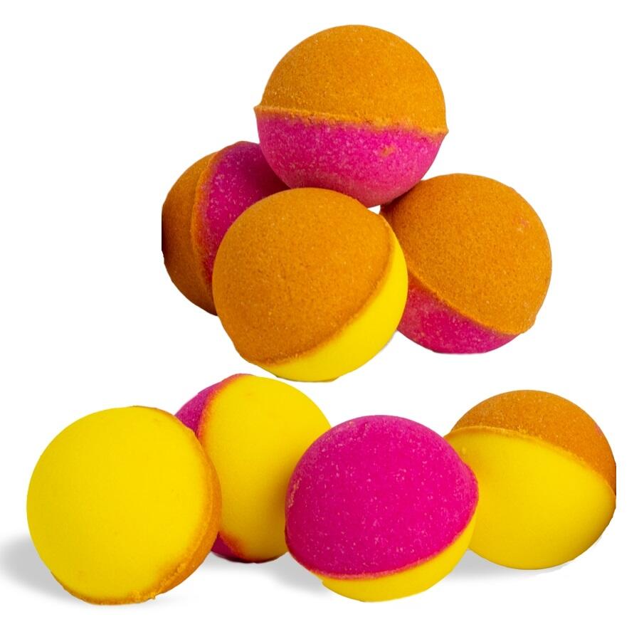 Cantitate: 12 seturi de 8x15g . Setul include 8 bile solubile in apa. Aroma de portocale si lamaie, mango si nuca de cocos, piersica si grapefruit.