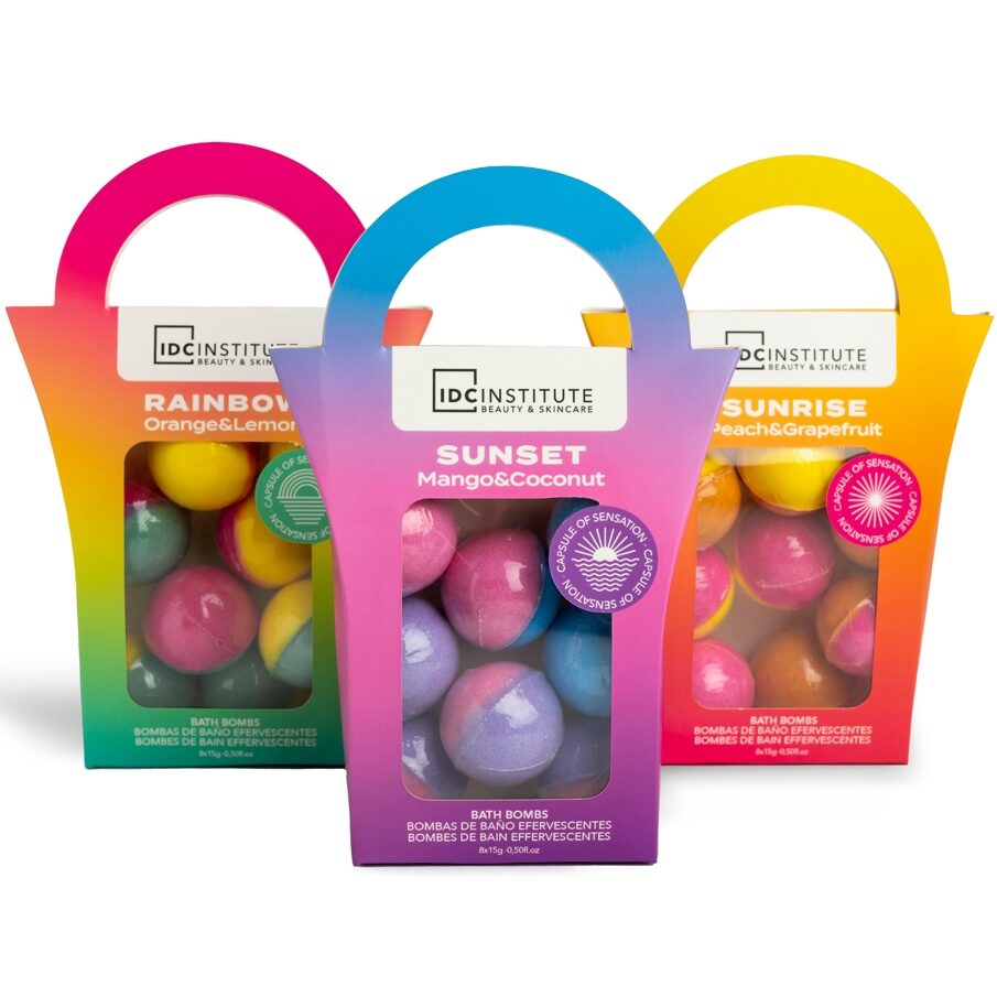 Pachet 12 seturi cu 8 bile efervescente de baie Sunrise/Sunset/Rainbow, IDC Institute 99025, 8 x 15g