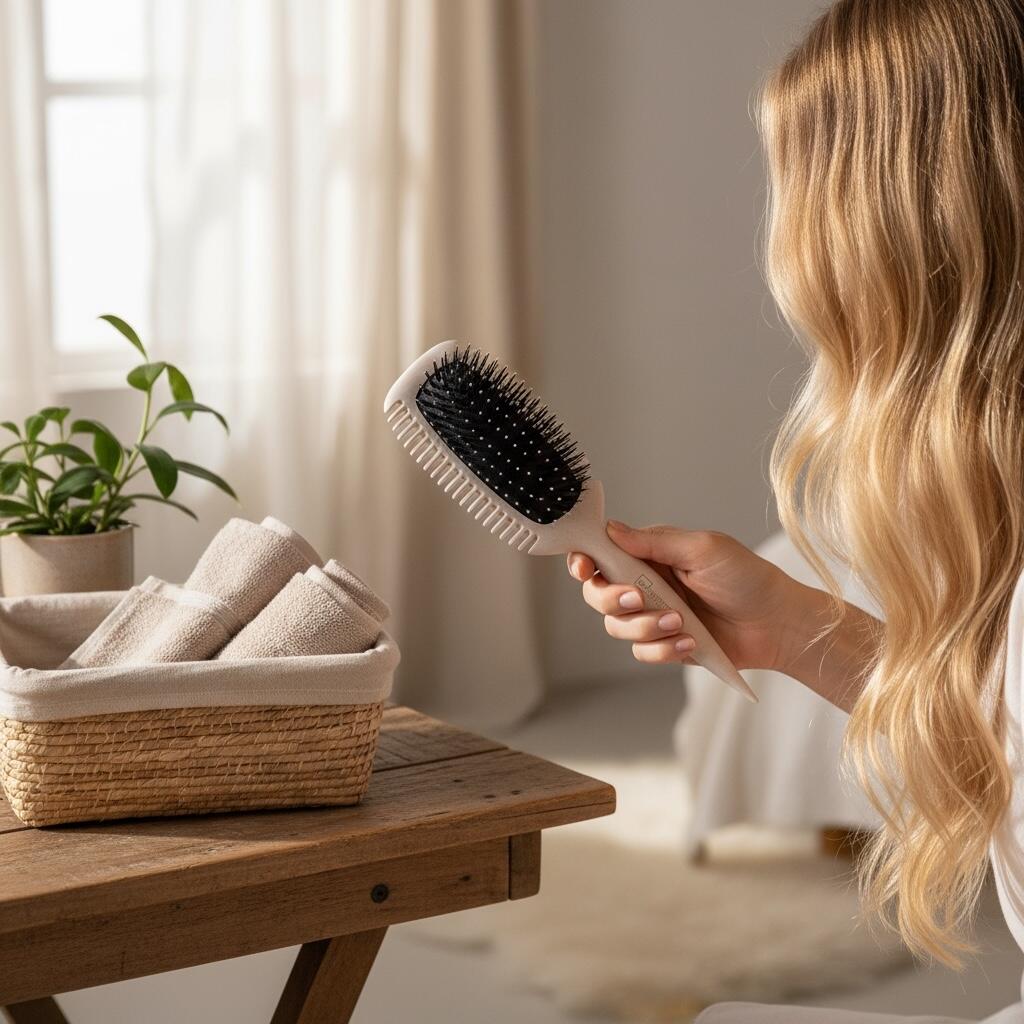 Aplică un produs de hidratare sau styling, apoi piaptănă ușor de la vârfuri spre rădăcini.