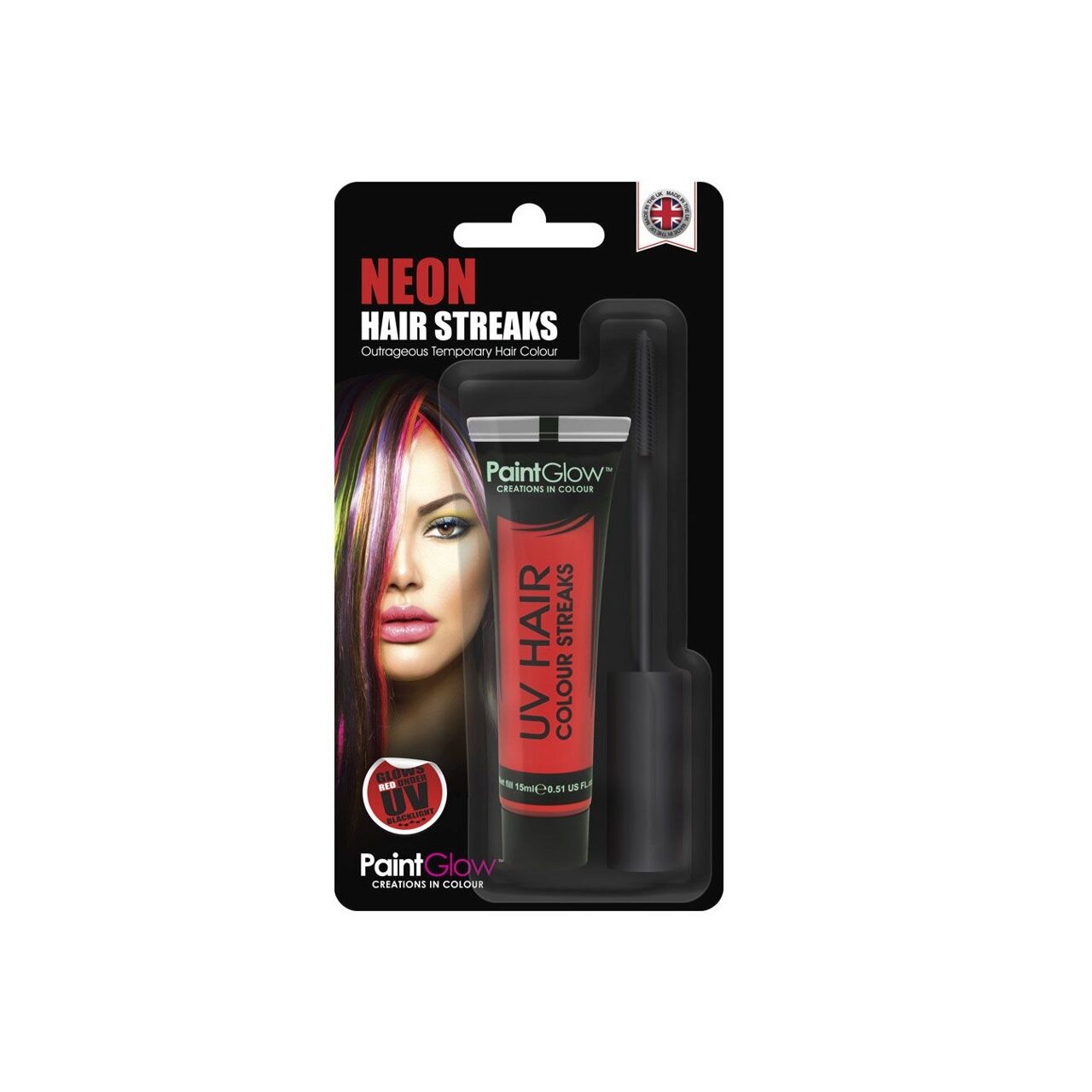 Înveseliți-vă look-ul cu ajutorul produselor de păr profesionale, reactive in lumina UV, de la Paint Glow (Mascara de păr de culoare rosie). Acest produs de păr de calitate, cu reactivitate in lumina ultravioletă, se aplică cu ușurință, oferind o culoare neon strălucitoare tuturor tipurilor de păr, și luminează strălucitor sub lumina UV. Vibrantă și versatilă, mascara Paint Glow pentru păr este ideală pentru Halloween, petreceri pentru copii, petreceri in club, festivaluri, nopți albe și multe altele. Mascara de păr UV PaintGlow adaugă suvite neon îndrăznețe oricărei coafuri, care se va remarca cu siguranță din mulțime. Bagheta clasică spiralata este ușor de controlat și asigură o culoare uniformă și puternică. Oferă-ți suvite stralucitoare in lumina UV, creează un look care sa atraga toate privirile, si adaugă o notă finală aspectului tău de vis. Perfectă pentru copii și adulți deopotrivă, acest produs se spală ușor cu șampon standard. Veti obtine temporar suvite rosii, stralucitoare, superbe, cu efort mini