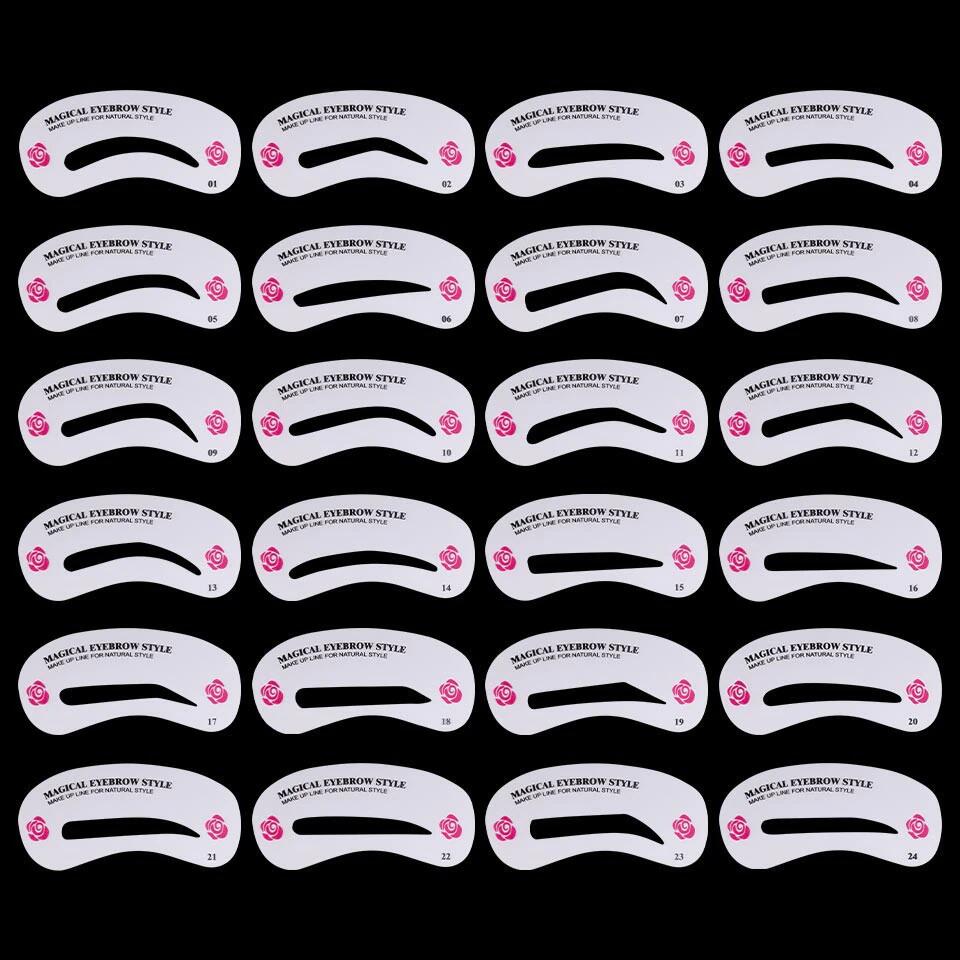 Setul include o selectie de 12 forme diferite de șablon, alese aleator dintre cele 24 din prezentare, astfel încât să puteți experimenta cu imaginea în timpul corecției acasă sau a aplicării machiajului, pentru a decide care formă vi se potrivește cel mai bine.