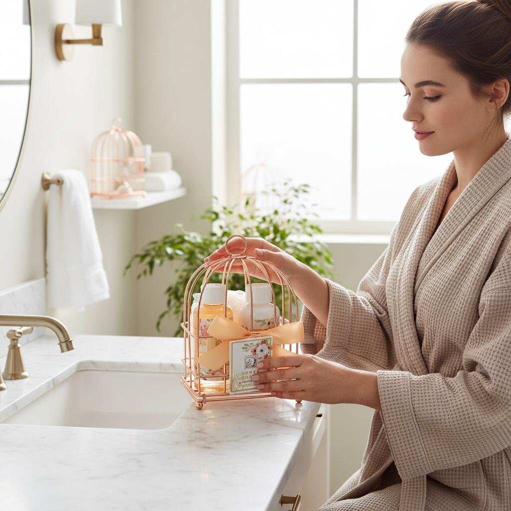 🎁 Ambalat într-un coș metalic decorativ rosé, reutilizabil