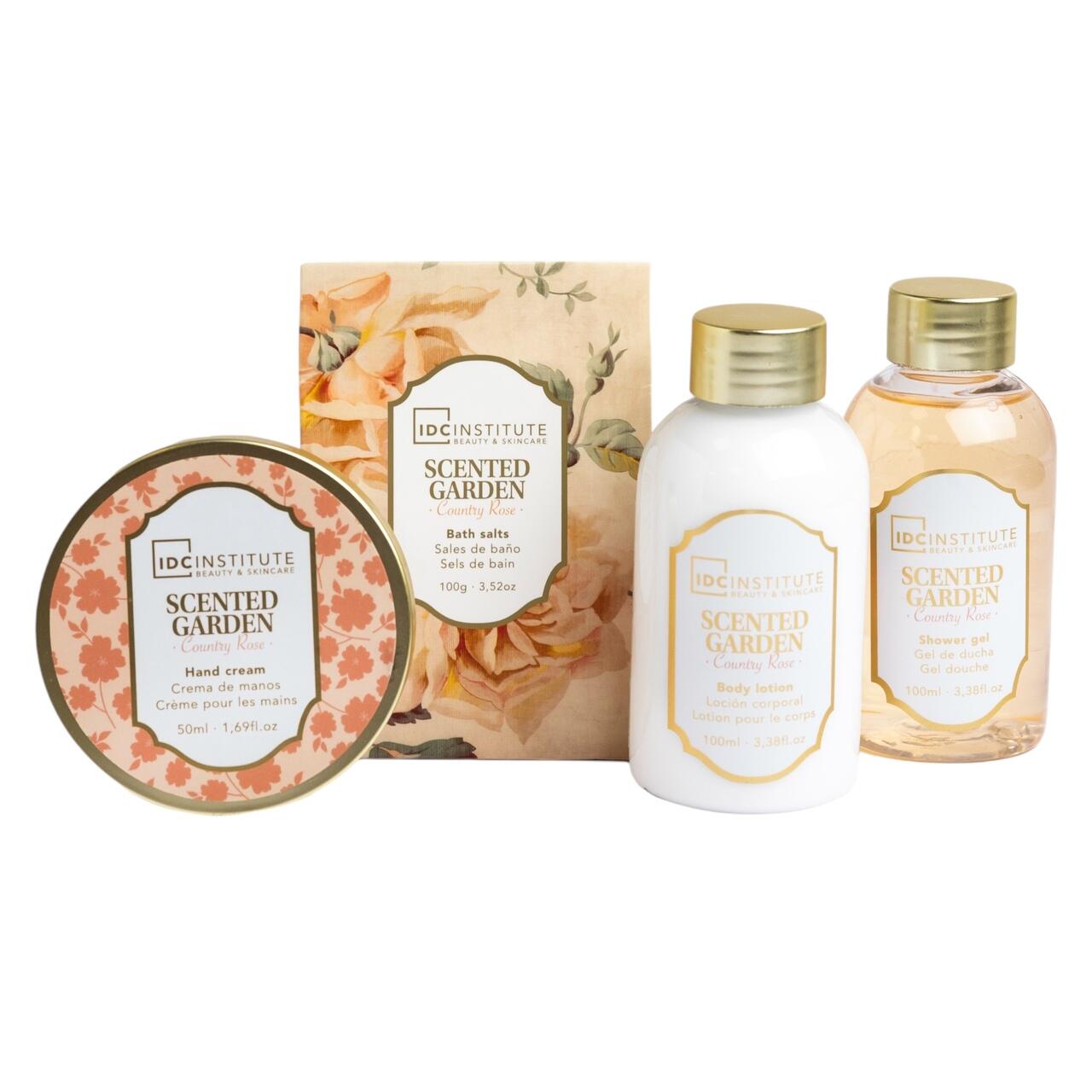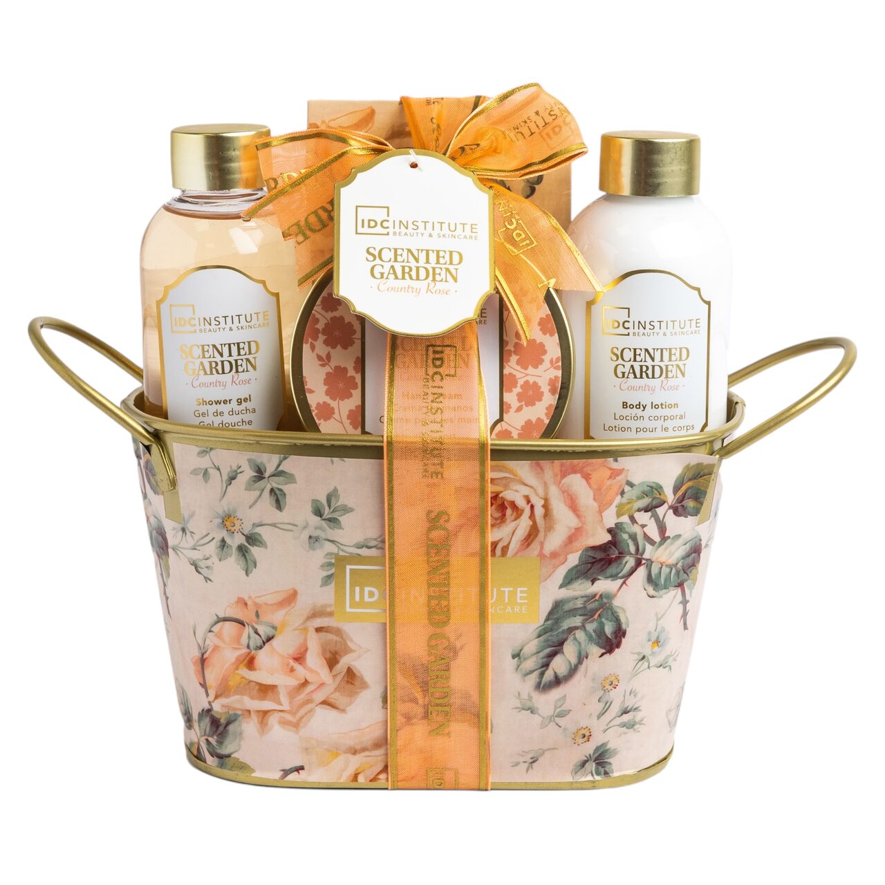Acest set elegant, cu un parfum rafinat de trandafiri sălbatici, oferă o experiență completă de îngrijire și relaxare. Produsele sunt prezentate într-un coș metalic decorativ, perfect pentru a fi oferit cadou sau pentru un moment de răsfăț personal.