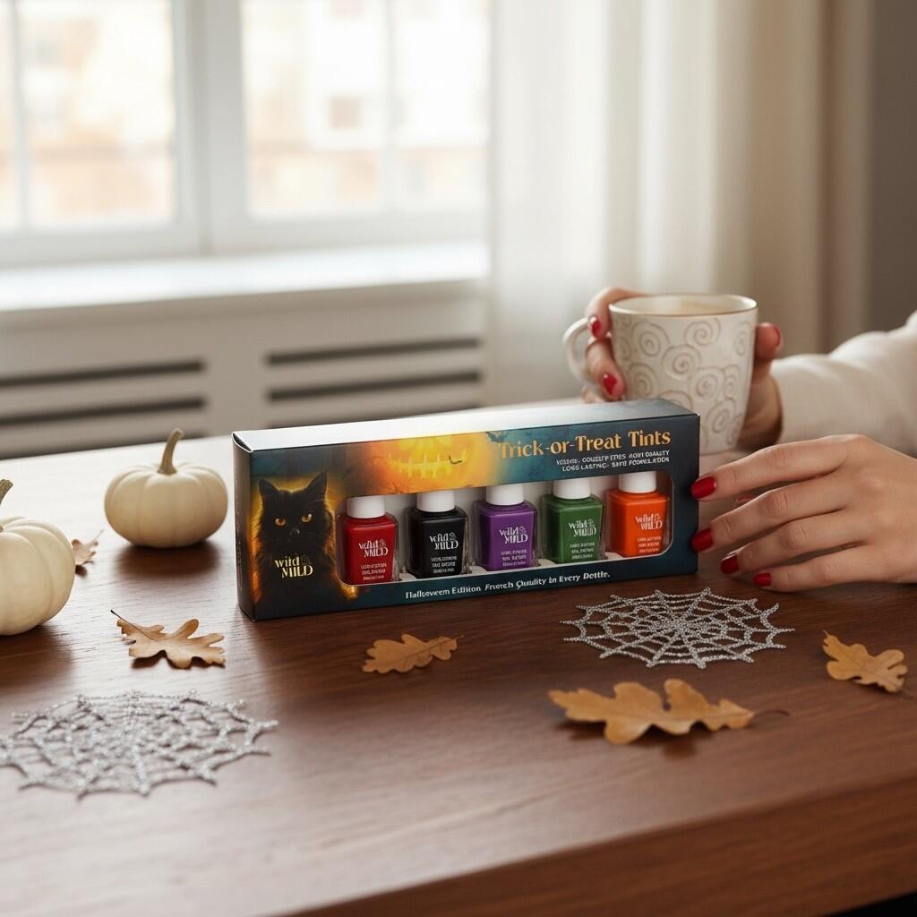 Transformă-ți manichiura într-o vrajă de culori intense cu setul Wild&Mild Trick or Treat Tints, ediție limitată dedicată atmosferei misterioase a Halloween-ului. Cinci nuanțe fascinante care surprind perfect farmecul nopții în care umbrele dansează și culorile devin vrăji: