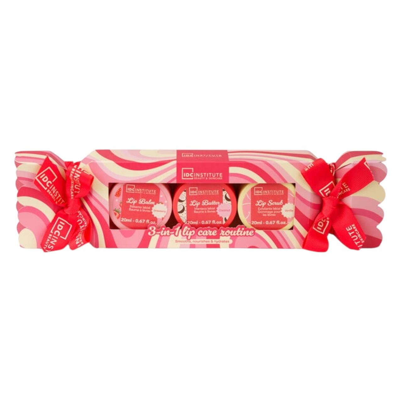 Sweet Swirls Trio Tropical pentru Îngrijirea Buzelor de la IDC Institute este un set complet de îngrijire labială, destinat adolescenților și adulților, inspirat din arome dulci și texturi cremoase care transformă rutina zilnică într-un adevărat ritual de răsfăț. Setul oferă o rutină 3-în-1 pentru buze netede, hrănite și intens hidratate.