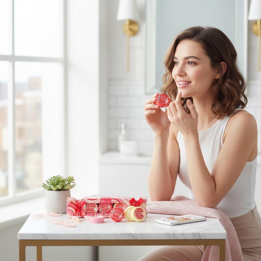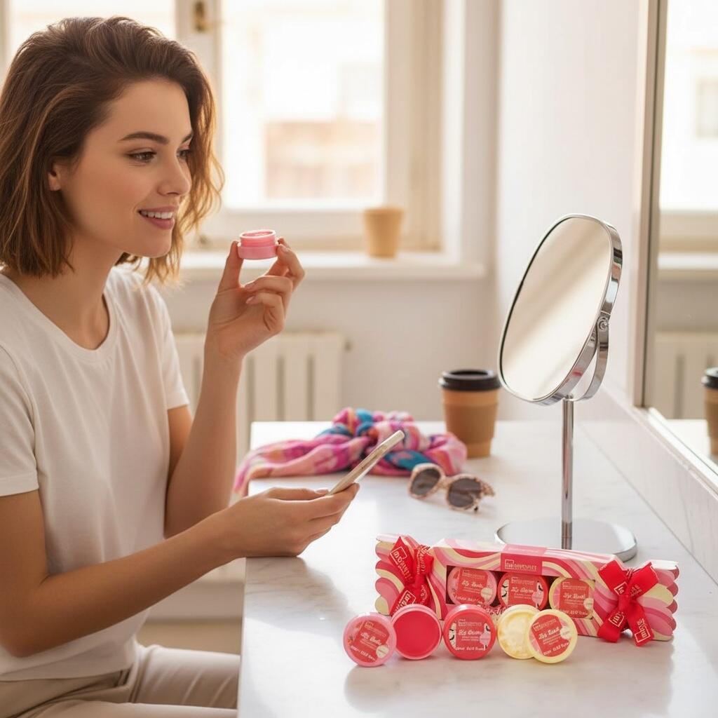 🟢 Aplicați balsamul de buze pentru hidratare și protecție zilnică.