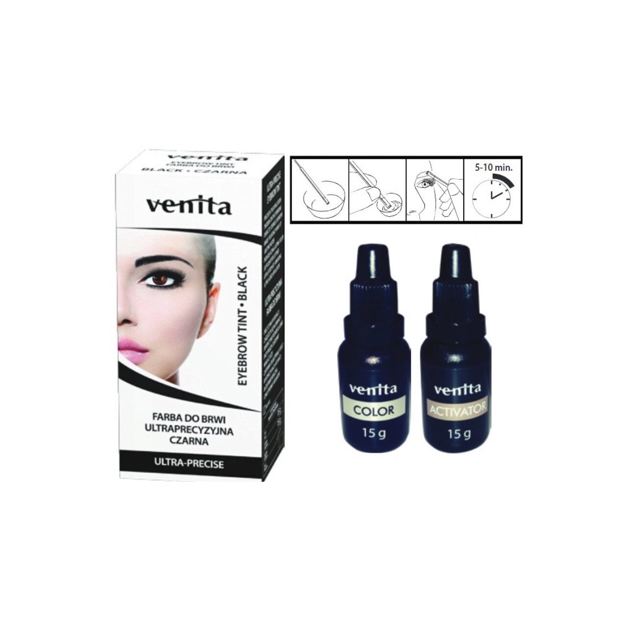 Vopseaua de sprancene termo-sensibila, ULTRA PRECISE Eyebrow Tint, de la Venita, este un produs inovator, care se ingroasa la contactul cu pielea, obtinand maximum de vascozitate la 36 ° C. Noutatea pe care o aduce aceasta vopsea de sprancene termo-reactiva este ca se obtine dim amestecul a doua lichide, suspensia coloranta si emulsia oxidanta. Mixtura, sub forma unui lichid subtire, se aplica pe sprancene. Datorita consistentei, acopera cu precizie chiar si cele mai fine fire de par, asigurand o conturare atragatoare a sprancenelor. Cand lichidul ajunge la temperatura corpului, capata o consistenta de gel, care nu curge si nu se intinde. Dupa numai cateva minute, culoarea devine permanenta.
